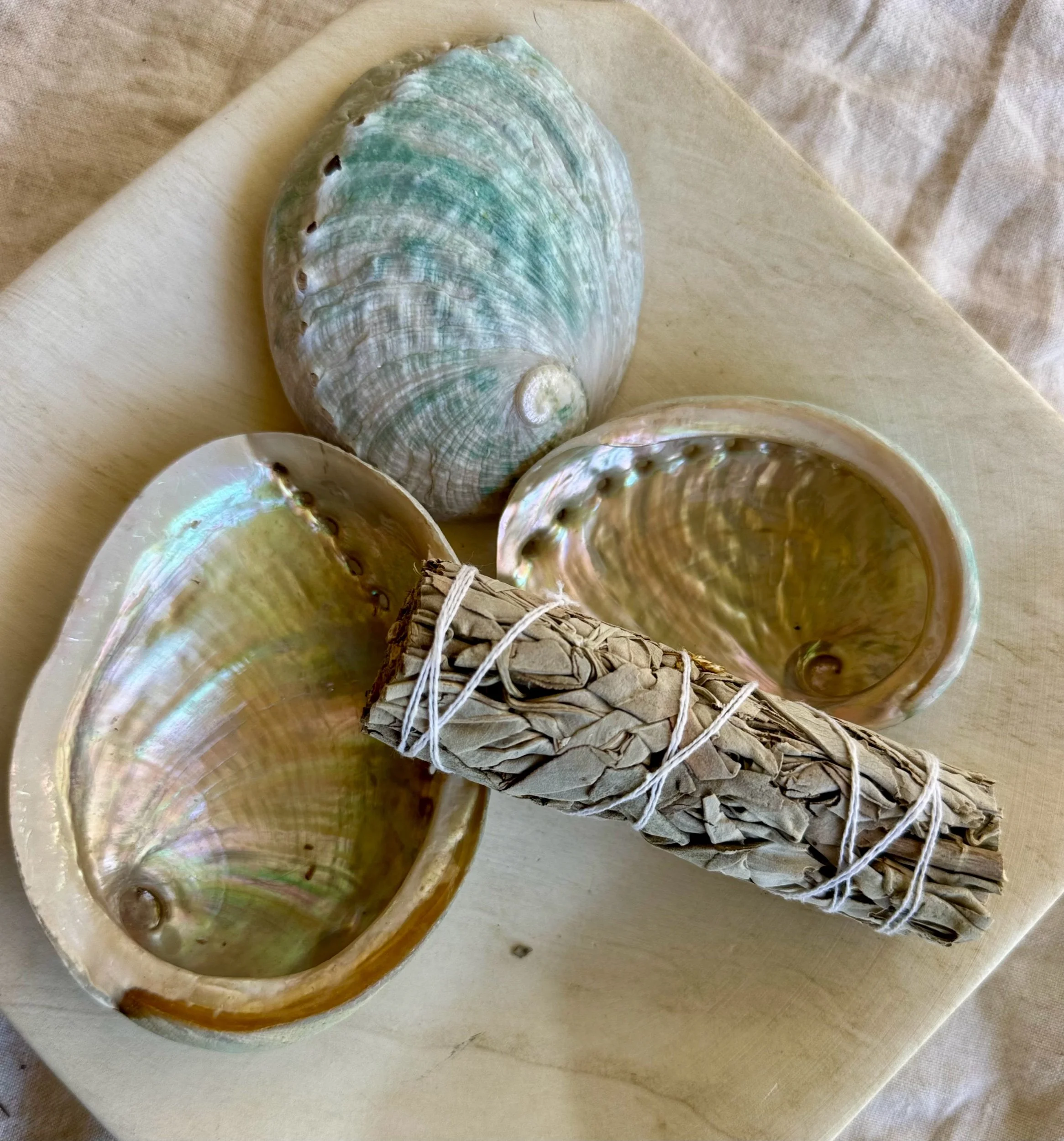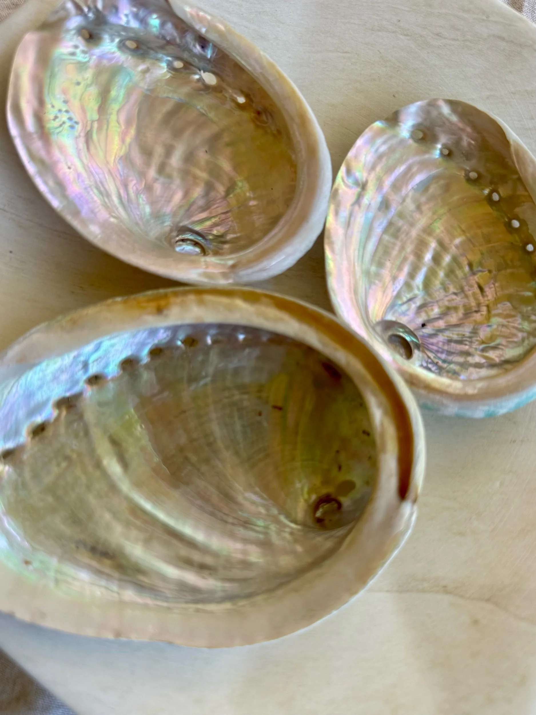 Abalone shells are deeply connected to the element of water and are often used to represent emotional flow, intuition, and protection during ceremony. Their natural iridescence reflects light beautifully, adding a grounding and sacred presence to any space.